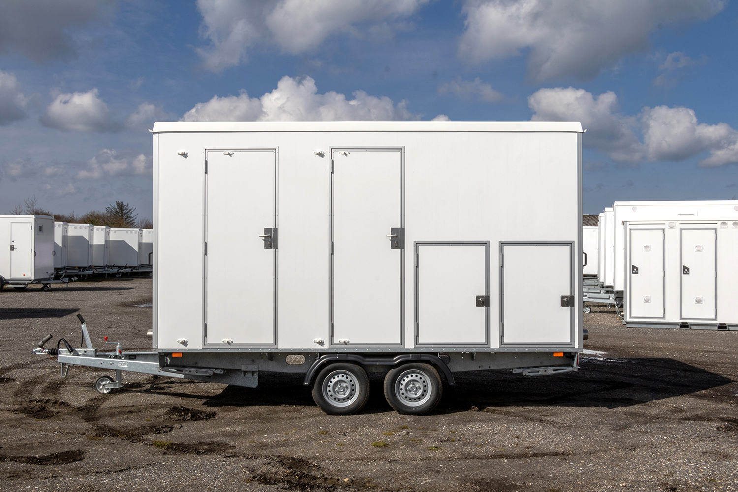 De Scanvogn vacuüm toiletwagen 2-1-2 is de ultieme oplossing voor intensief gebruik op locaties waar geen enkele voorziening aanwezig is. Dankzij de enorme capaciteit is deze wagen de favoriet voor infra-projecten, filmsets en grote bouwplaatsen.